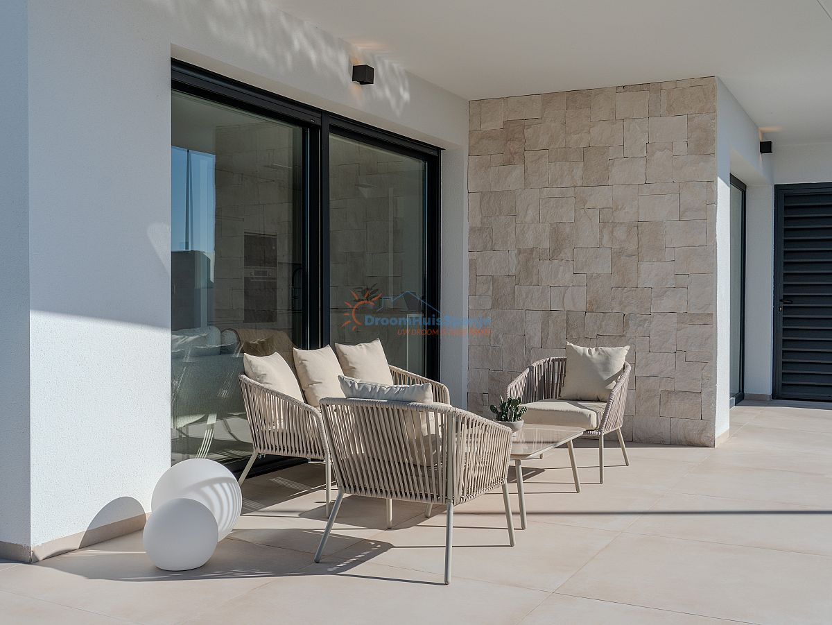 De terrassen en buitenruimtes zijn zorgvuldig ontworpen om optimaal te profiteren van het overvloedige licht van de Costa Blanca. Deze buitenruimtes vormen een natuurlijk verlengstuk van de woning en creëren een harmonieuze overgang tussen binnen en buiten. De indeling bevordert privacy en rust, waardoor elke dag aanvoelt als een vakantie.