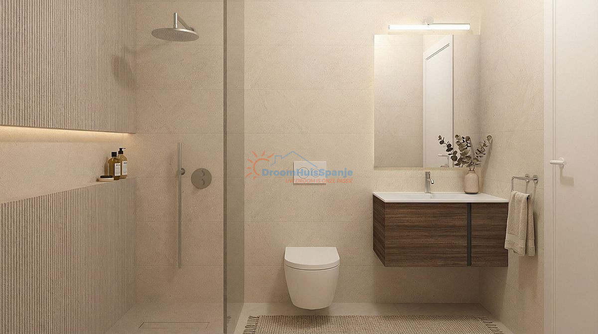 De villa’s beschikken over 2 slaapkamers en 2 badkamers, uitgevoerd in een eigentijdse stijl. Het open ontwerp zorgt voor een vloeiende ruimtestroom en creëert een naadloze verbinding tussen de volledig uitgeruste keuken en de lichte woon-eetkamer. Dit resulteert in een moderne, functionele woonervaring die perfect aansluit bij de mediterrane levensstijl.